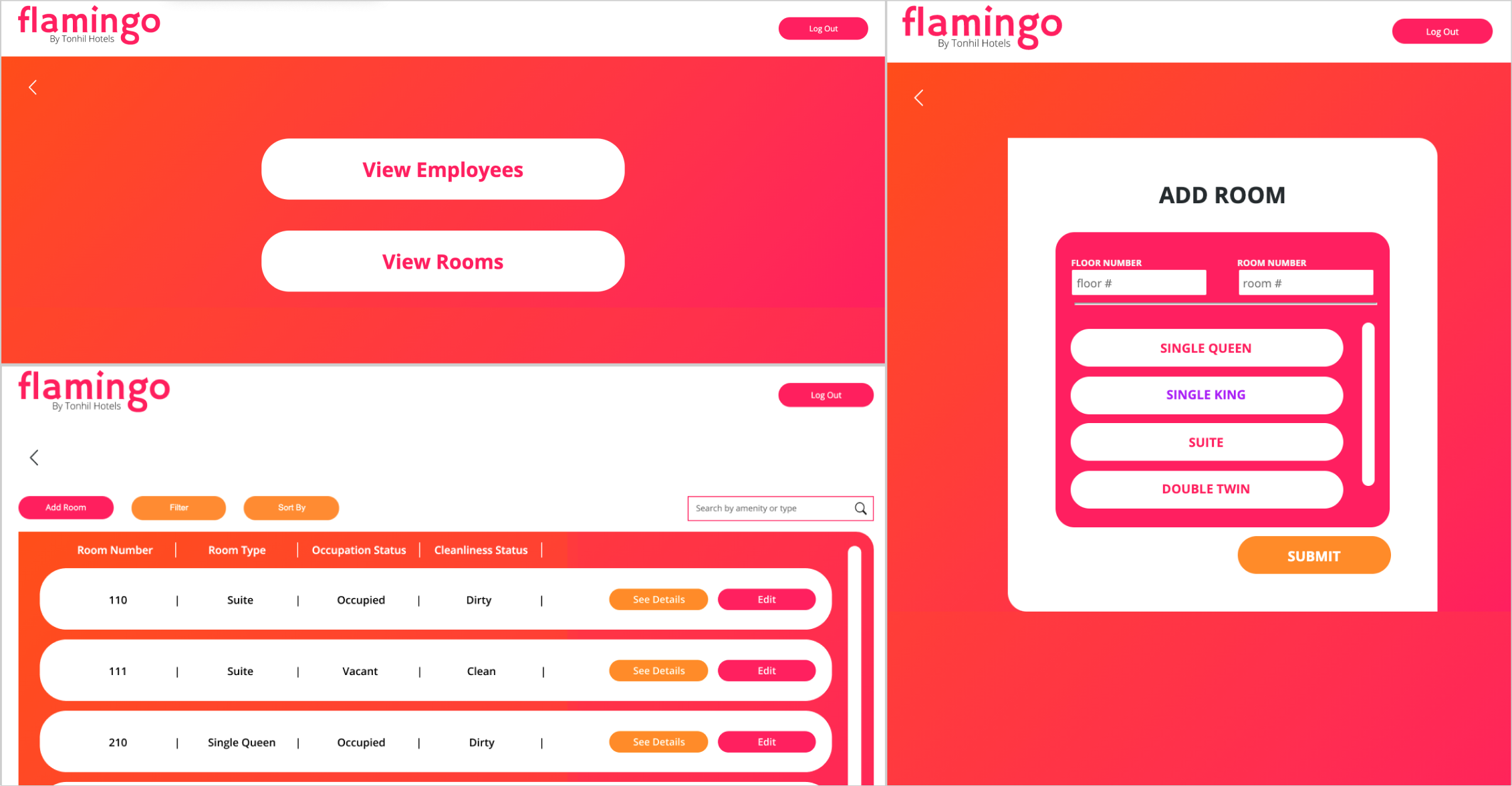 Built an application to handle tasks for front desk, housekeeping, management, and system administrator.