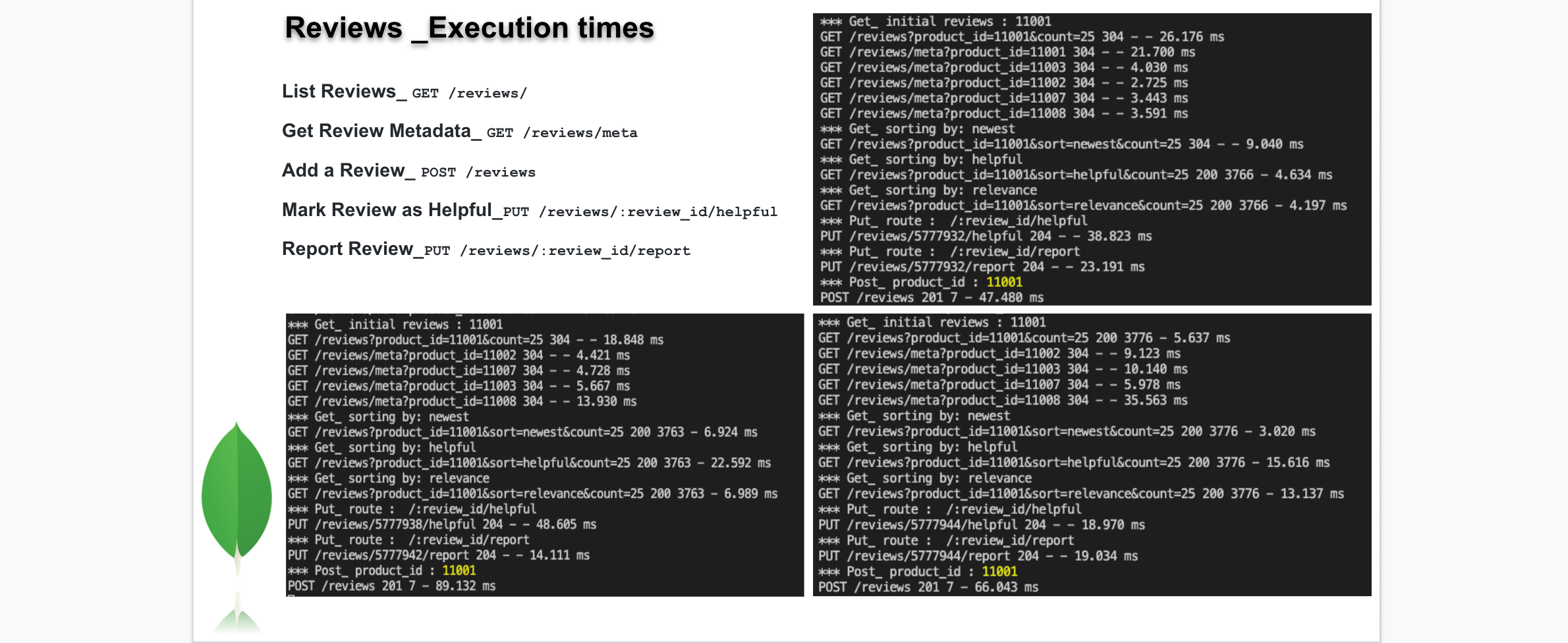 • Optimized mongoose queries utilizing indexing, and aggregation.